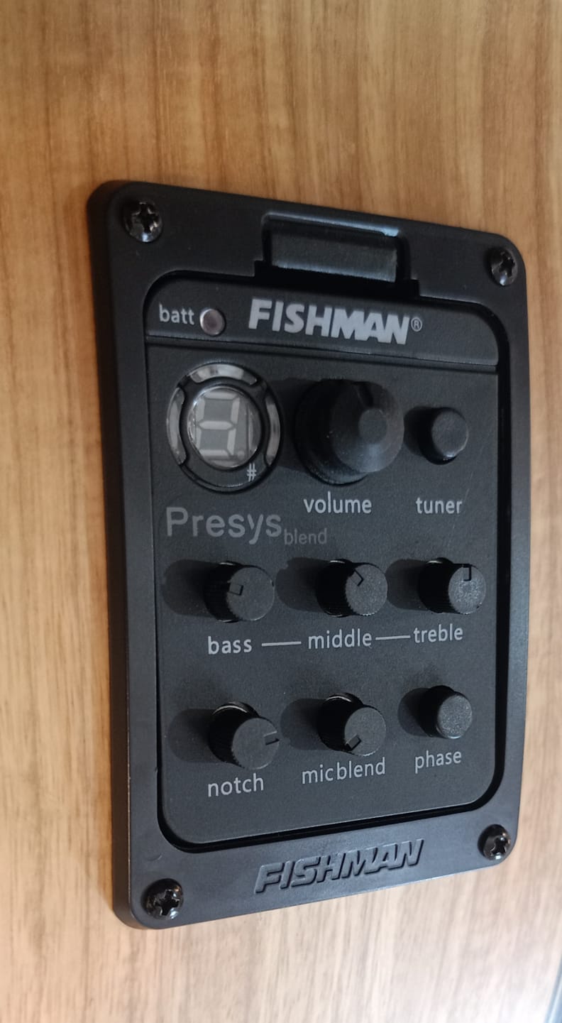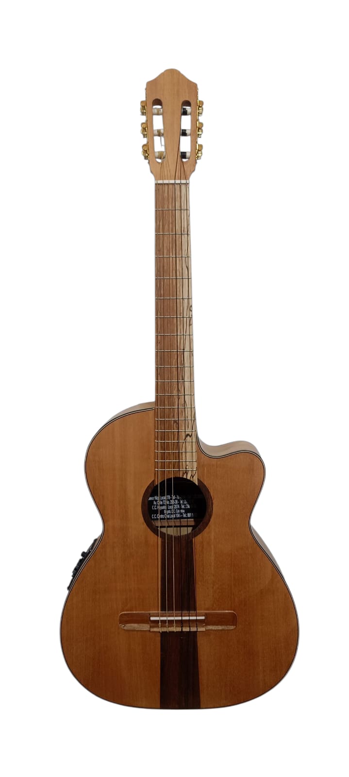 GUITARRA ELECTROACUSTICA PINO ENSAMBLE NOGAL CUERPO EN CEDRO, MICROFONO FISHMAN CON AFINADOR.